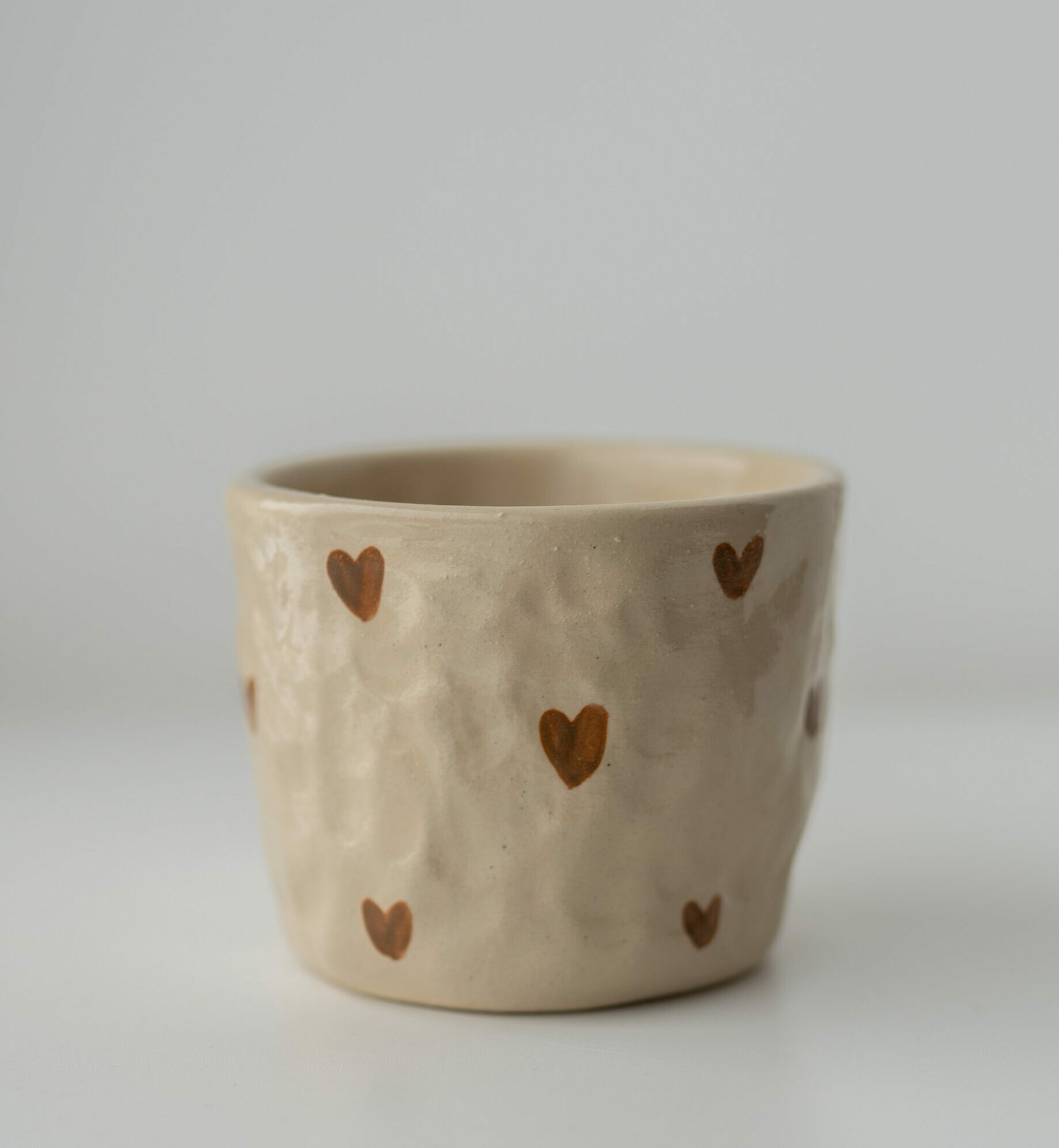 Ręcznie lepiony kubek w serduszka.